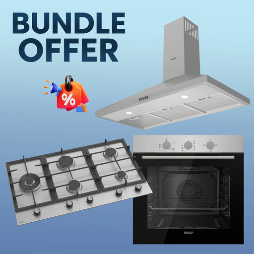 مجموعة التوفير من باساب العرض يشمل: بوتاجاز بلت إن 4 شعلة غاز مقاس 60 سم فرن بلت غاز إن 60 سم شفاط هرمي بلت إن 90 سم